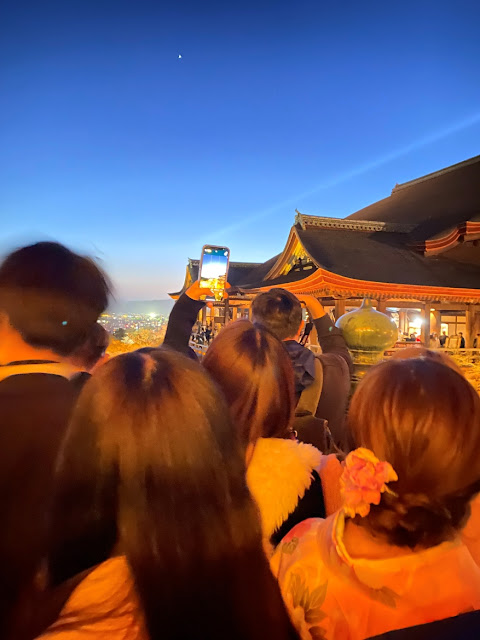 The night lights were on, cherry blossoms turned into gold lolxx...By the time we reached the top, the sky turned dark, suddenly. So I wasn't able to see the wood structures at all. Will have to arrange for another trip back here in 2025.