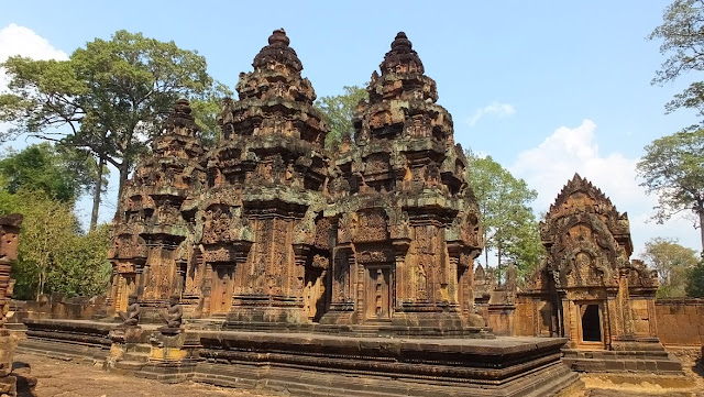 The name no doubt, derived from the pink colours of the limestones in this mini temple and the (extremely) elaborate decorative carvings of many devatas (minor female deities) on the walls and doors.