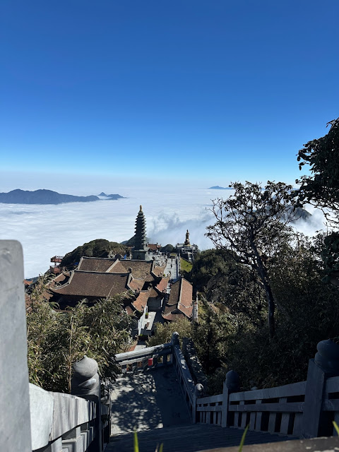 The view was super 壮观雄伟.  I would say, with this view, it would be the greatest regret if one came to Sapa without coming to Fansipan.  But again, whether one could see the sea clouds or completely clear with green views or the worst - all blocked by thick fog, luck and weather plays a majority part.